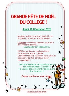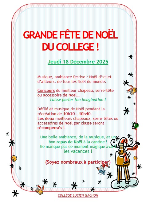 Jeudi 18 décembre : grande fête de Noël du collège !