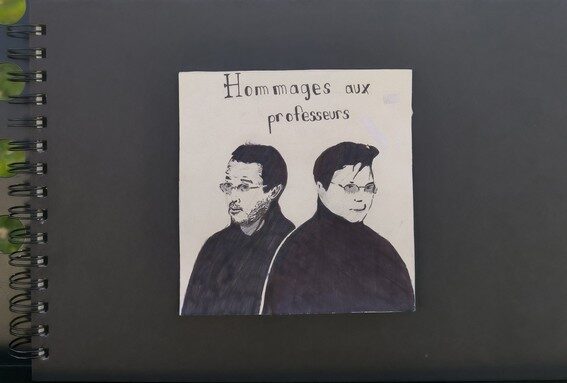 Les dessin de Rébéka 3e pour le carnet qui recueillera d'année et année les témoignages des élèves. Les élèves de 3e ont travaillé en français avec Mme ANdrieu à partir de l'écoute de podcasts revenant sur l'attentat perpétué contre Samuel Paty.