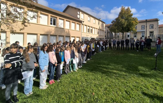 Les élèves, les personnels rassemblés en présence des représentants de la brigade de gendarmerie de Cunlhat et du maire de Tours-sur-Meymont